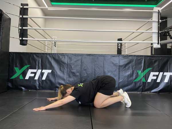 Исходное положение квадрат (упор стоя на коленях) Сделайте широкий шаг руками вперед и потянитесь тазом назад. Если позволяет гибкость сядьте на пятки, старайтесь направлять таз чуть вверх и назад. ). Вернитесь в исходное положение. Выполните 8-10 раз.